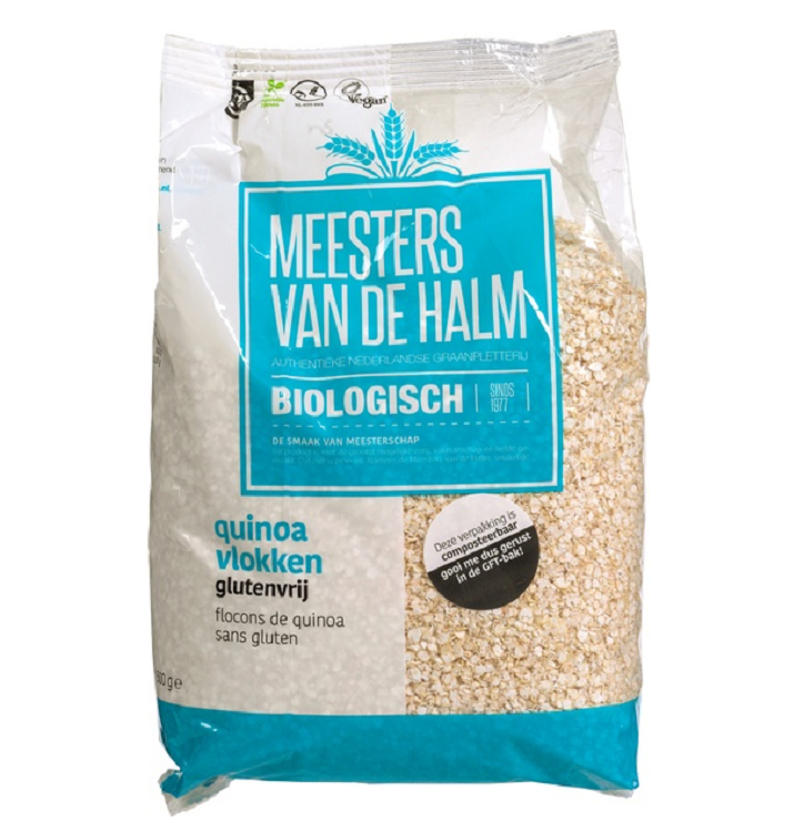 Deze 4-korenvlokken van De Halm bestaan uit een mix van vier granen die op Nederlandse bodem zijn geteeld, namelijk haver, gerst, rogge en tarwe. De 4-korenvlokken vormen een ideale basis voor pap of zelfgemaakte muesli.