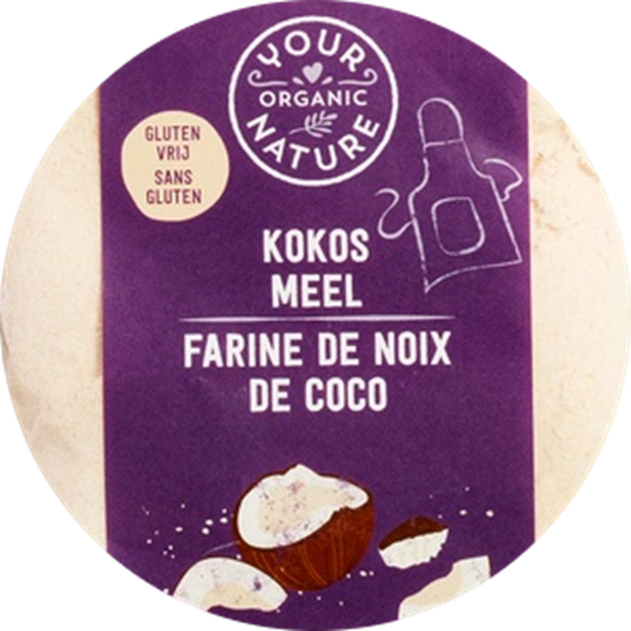 Your Organic Nature kokosnoten worden eerst gedroogd en daarna gemalen. Dit product bevat van zichzelf geen gluten en een goede bron van vezels.